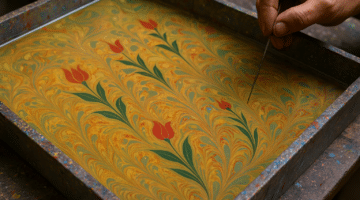 Explore the Turkish art of ebru marbling, which is believed to have originated in Central Asia and journeyed to Turkey along the Silk Road. In...