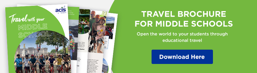 The middle school years are a critical window, a time when self-development and critical thinking skills take shape. You don’t have to wait until high school or college to reap the many positive benefits of educational travel abroad, and ACIS can help you share those benefits directly with your middle schoolers.