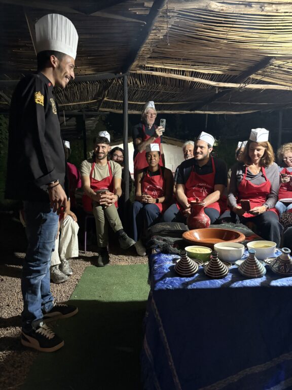 Moving outside of Marrakech, Team ACIS traveled to Agafay, staying in tents in the desert and riding camels. They then drove through Atlas mountains to Ouarzazate. Famous for its two movie studios, where Game of Thrones and Gladiator were both filmed, this city was a highlight, especially for those who had previously only traveled to Marrakech. There’s always a fresh perspective to see, and we encourage this mindset for both students and group leaders. The group also toured Ai Ben Haddou, a pre-Saharan city dwelling which is a UNESCO World Heritage Site.