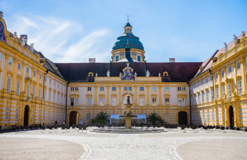 Melk, located in Austria’s scenic Wachau Valley, is renowned for its majestic Benedictine Abbey, a baroque masterpiece perched above the Danube River. This historic town offers visitors a blend of cultural richness and natural beauty, with the abbey’s impressive library and church, and stunning river views. Melk serves as a gateway to exploring the vineyard-clad valleys and medieval towns of the Wachau region, making it a must-visit for history enthusiasts and nature lovers alike.