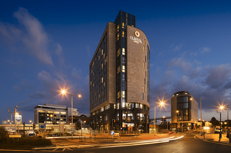 The 4-star Clayton Hotel Cardiff offers modern comfort in the city center, steps from Cardiff Central Rail Station and landmarks like the Principality Stadium and Cardiff Castle. Air-conditioned rooms feature free WiFi, flat-screen TVs, and luxury bathrooms. Guests can enjoy the Vitality Breakfast and international dining at The View Restaurant or unwind with snacks and drinks at the stylish bar. St. David’s Shopping Center and Cardiff Motorpoint Arena are within a 5-minute walk.