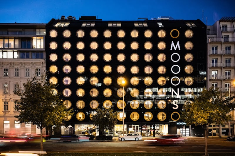 Located near Vienna’s main train station, this 4-star boutique hotel combines striking design with an urban lifestyle. Its distinctive facade, featuring full moon windows, provides spectacular views of iconic city sights. The 170 stylish rooms are designed like cozy space capsules, equipped with high-quality furnishings and excellent soundproofing for a tranquil stay. Each room’s unique round windows create personal lounges that offer stunning vistas, making every stay a unique experience.