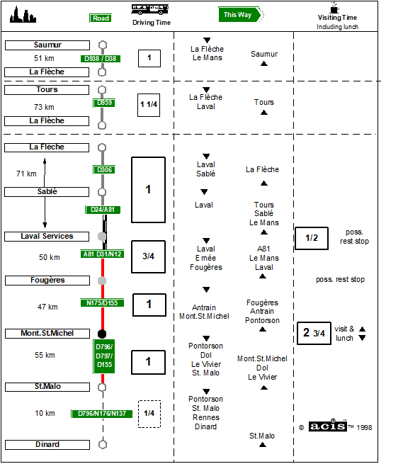 If you visit Mont St Michel after spending the night in Dinard it is best to take the most direct route to Mont St Michel (see route march)