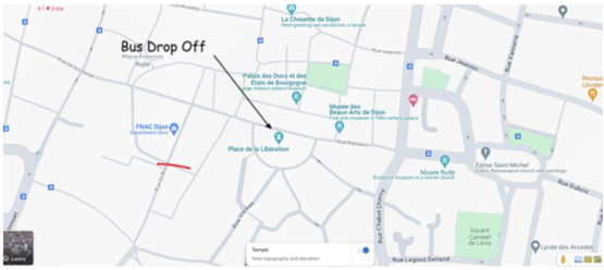Coming from Paris, follow signs to Dijon Centre and Gare SNCF. This will bring you along the Avenue Albert Premier (see map).