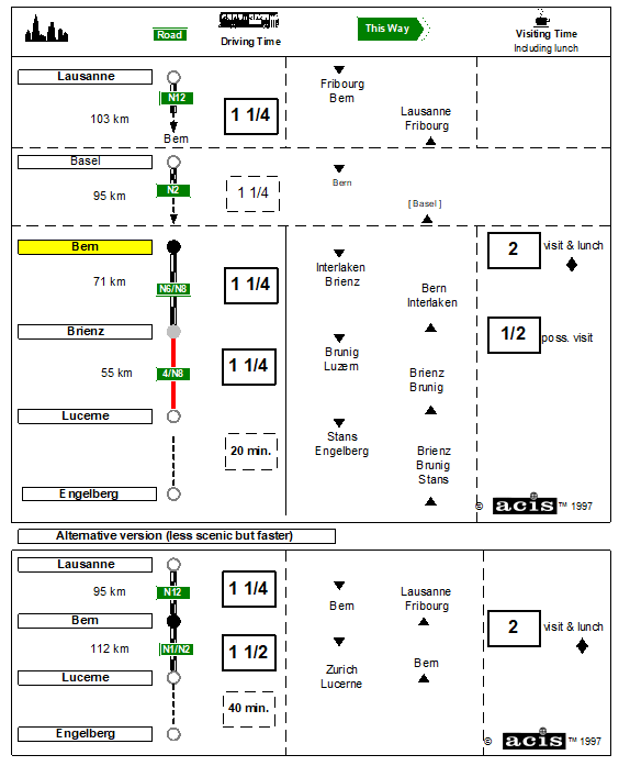 · In winter and early spring the Brünigpass between Brienz and Lucerne might be closed. Check if you are in doubt. This is, however, very unlikely!