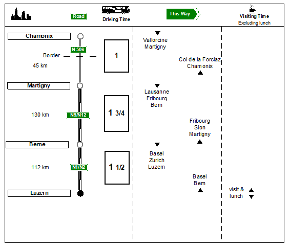§ In spring, check whether the road between Chamonix and Martigny, via the Col des Montets and the Col de la Forclaz, is open. The alternative route is via Geneva – add one hour’s driving time for this option.