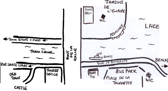 Opposite the boat departure point, on the other side of the lake, the group can lounge in the park, the “Jardins de l’Europe” or hire pedalos. Both are located just behind the town hall.