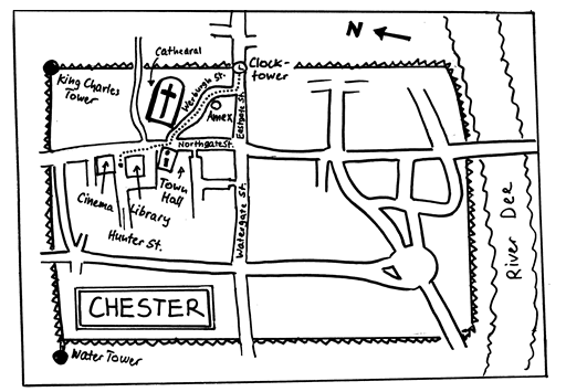 Most central coach drop-off is now on Vicars Lane near the Roman Ampitheatre. (it’s where the Letter N is on the map below). Public Toilets are located in the Grosvenor Centre, 3 minute walk, inside the city walls.
