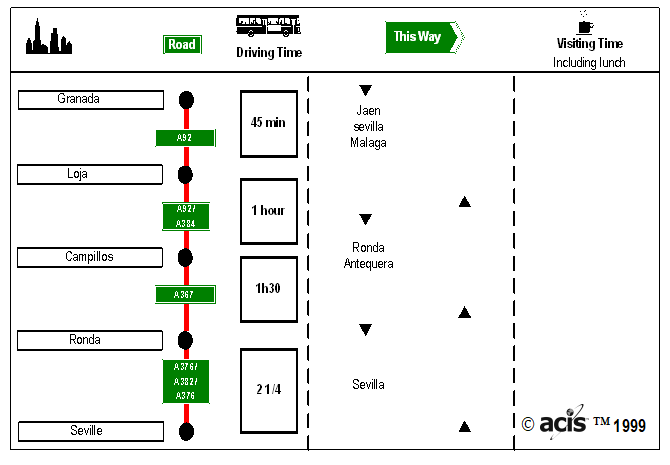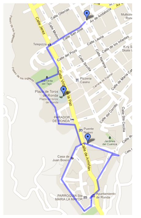 Granada – Ronda : Apart from the Los Abades rest stop just outside of Granada there is no place to take a break on the road to Ronda – The Los Abades rest stop is probably too soon to take a break if going in the direction from Granada – Ronda, so pre-warn the group in advance so they don’t drink too much liquid on the journey and become uncomfortable! No problem if going Ronda – Granada as the Los Abades rest stop timing works in your favour in that direction. There are some cafes near to the Bullring in Ronda where your group can buy a drink and use the bathroom on arrival in Ronda.