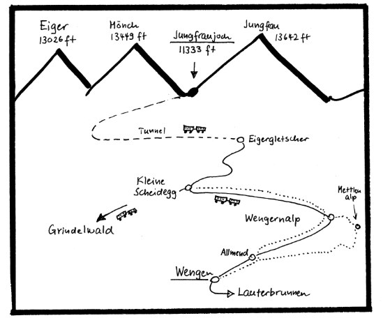 You change trains at the Kleine Scheidegg, make sure that the group doesn’t wander off as you normally have only 5 minutes.