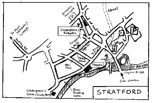Set down in the Birthplace coach park (Windsor St.). Walk group to Centre and Birthplace (Henley St.). Warn group to take care when crossing Windsor Street. Pay with voucher in the centre. You have a choice between brief audio visual or small exhibition, then into gardens, the house and shop. At height of season can become crowded. Ensure group is aware of meeting points/times before they disperse for free time. A good place to meet after the visit is the Jester statue (top of Henley St.).