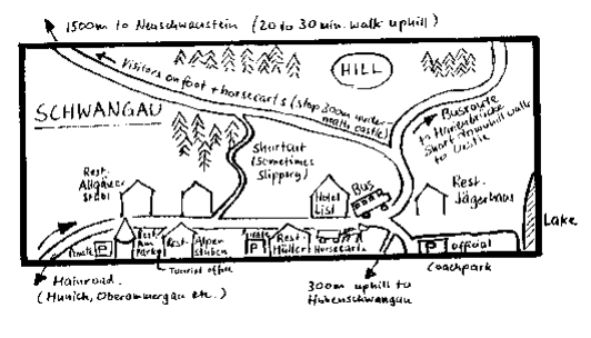 On arrival in Schwangau, ask the driver to drop you off by the ticket office while they take the group on to the coach park. Ask the group to wait for you there. Buy the tickets, find your bus and point out the pay toilets by the coach park. There are free toilets at the castle.