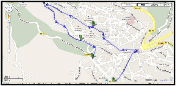 The tourist office in this Plaza (on the right-hand side with the Aqueduct at your back) has lovely pictorial maps for a small charge if anyone in your group is interested. If you are stopping for lunch, there are good lunch places around the Plaza del Azoguejo. Give your group time for lunch and the meet again in the Plaza.