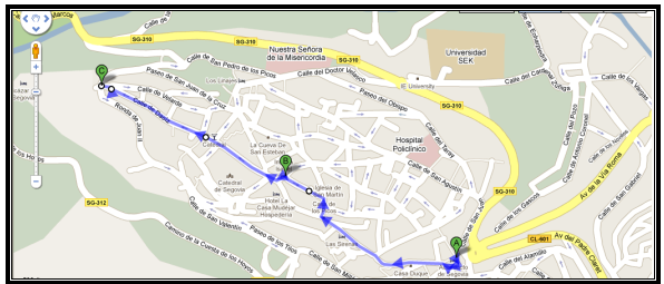 The tourist office in this Plaza (on the right-hand side with the Aqueduct at your back) has lovely pictorial maps for a small charge if anyone in your group is interested. If you are stopping for lunch, there are good lunch places around the Plaza del Azoguejo. Give your group time for lunch and the meet again in the Plaza.