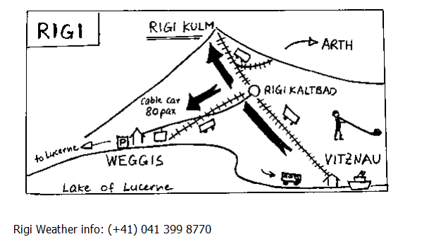 · There are four different ways to reach the Rigi: from Arth, Vitznau and Weggis by cog railway and from Weggis by cable car. If possible you should take the cog railway from Vitznau and return to Weggis by cable car. Be sure the driver knows where to pick you up and that he is aware that the cable car station in Weggis is not the same one as the cog railway station.