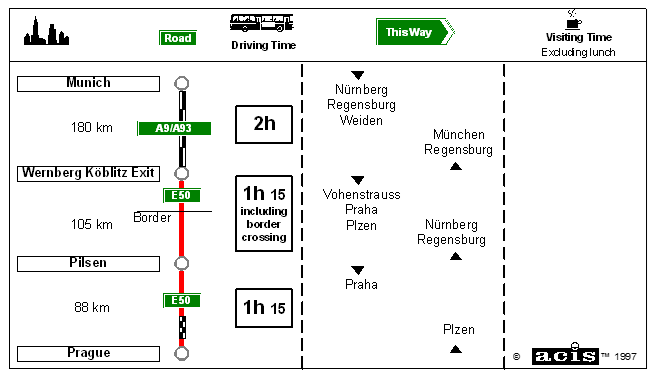 - There are several Autobahn Rest Stops in Germany, or alternatively Regensburg is a straightforward, very attractive place to stop for lunch. It is located 125km (1 hour 30) from Munich or 265 km (3 hours) from Prague.