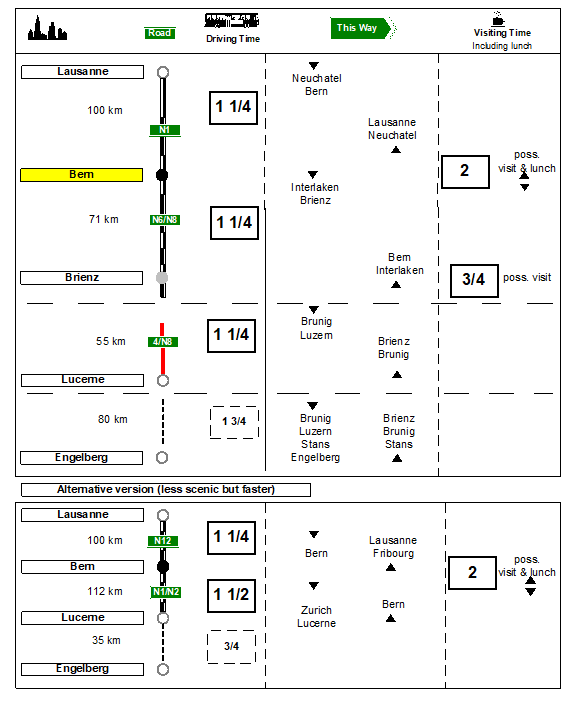Check whether a walking tour of Bern and/or a visit of the woodcarving factory in Brienz are included in the itinerary. In winter and early spring the Brünigpass between Brienz and Lucerne might be closed. Check if you are in doubt. This is unlikely, but it is worth checking after a heavy snowfall, as the alternative is quite a detour.