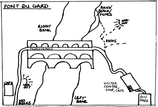 You will have a voucher with an AM or PM reservation made by the Paris office. (If PDG is not included but groups do want to go it costs €8 per person, free Under-18s) Give this voucher into the info office on the left after the entrance into the arcade. They should give you a receipt which means your driver no longer needs to pay for parking. Be sure to amend your voucher to reflect the exact numbers in your group. Voucher does include entrance to a short film (multilingual) about the PDG. They may be more interested in the exhibition though. It is possible that you may have a booked guided tour. If so, please be on time as the Pont du Gard are strict about this.