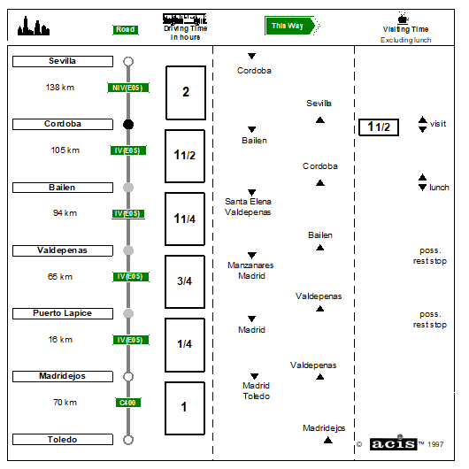 There is an Abades service station (Pedro Abad) 30km to the north of Cordoba that makes a good rest stop prior to arrival in Cordoba – coming from Toledo lots of toilets = saves time on arrival in Cordoba. From Madrid to Seville Exit 367, From Seville to Madrid Exit 368 Tel: +34 957186297