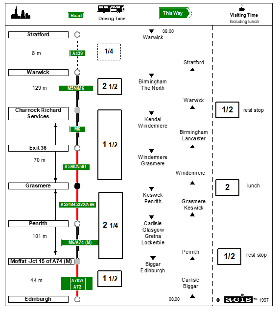 - Moffat Woolen Mills, 01683 2201, www.visitmoffat.co.uk on A701 or the Blacksmith’s Cottage at Gretna Green, 01461 338441, www.gretnagreen.com, just over the border are potential stops on the way to Edinburgh.