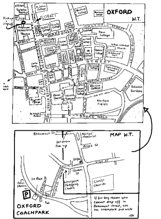 Set down and pick up in Beaumont St. and arrange time/place for departure. If you decide on the Martyrs Memorial impress on group that they will be making their own way back to the coach from Christchurch so to pay attention to route and find bearings, and they need to be on time. The city does not like coaches parking in this area.