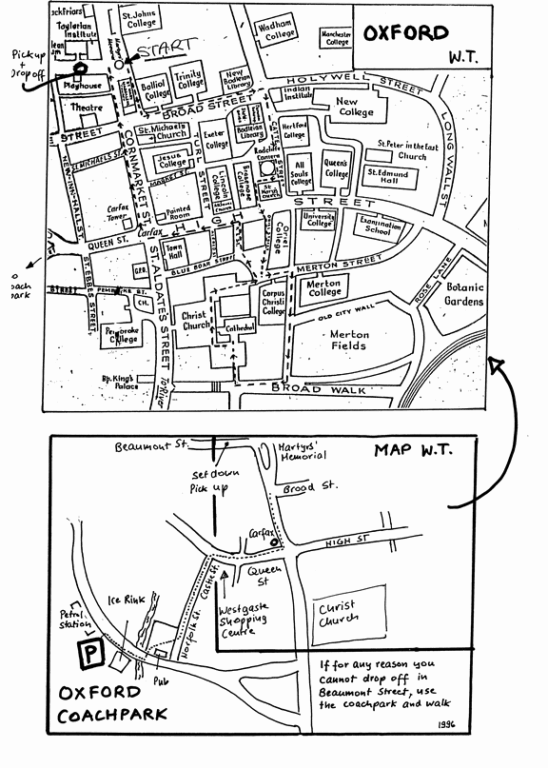 Set down and pick up in St Giles/Beaumont St. and arrange time/place for departure. If you decide on the Martyrs Memorial impress on group that they will be making their own way back to the coach from Christchurch so to pay attention to route and find bearings, and they need to be on time. Otherwise make a meeting spot on Cornmarket and walk to the coach as a group.