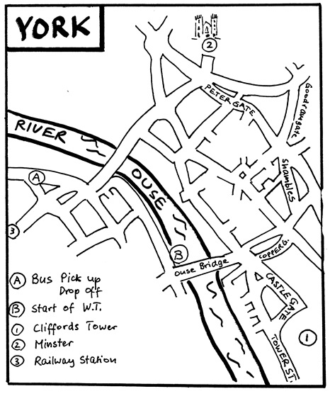Drop off at Leeman Road coach drop off. Walk to Minster. Be aware that some people may require the restroom.