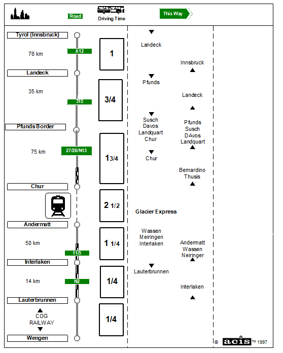 Full day’s journey by bus and alpine trains.