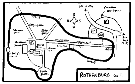Rothenburg is completely closed to coaches, the only access allowed is for hotel transfers. Therefore your sightseeing is done on foot. The official coach park is outside the walls at the Hospital Bastion (Spitaltor) – follow signs to P1.