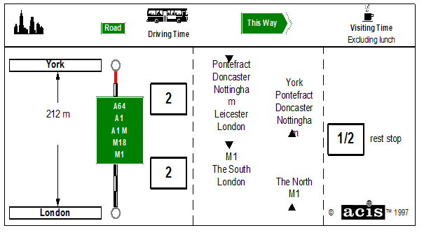 Make a rest stop for ½ hour to split your journey. It might be advisable to make two rest stops. Leicester Forest Services is approximately half way. Alternatively, you may choose to pull off the motorway to a nearby town with suitable facilities. Discuss options with the group and your driver.