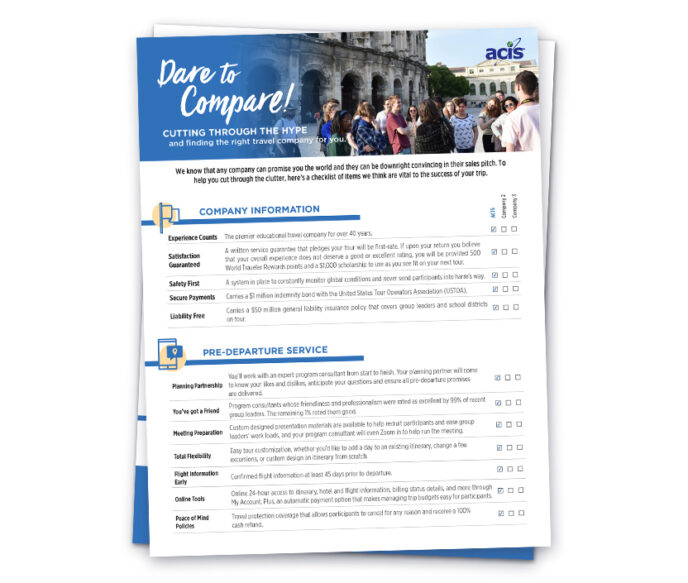Dare to Compare – Educational Travel Company Checklist